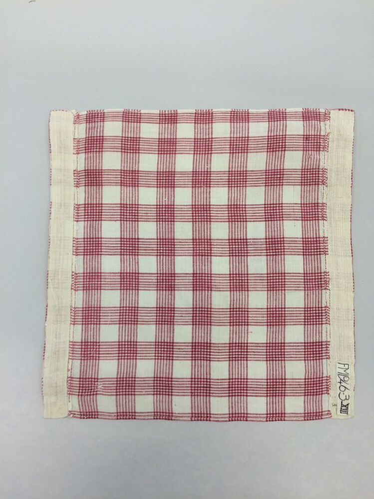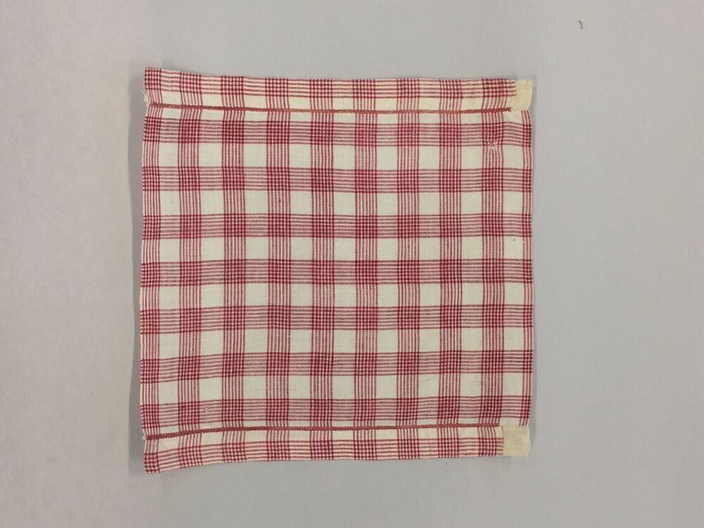Hindelooper borstlap of foarpeldook van wit en rood bont,