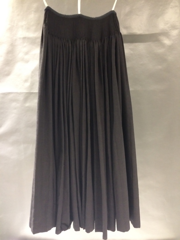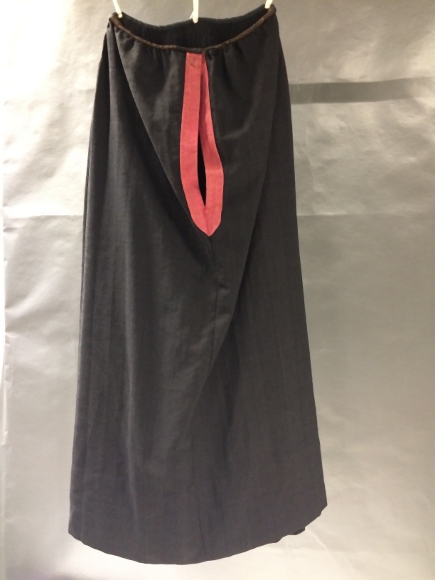 Worp, zwarte wollen bovenrok uit Hindeloopen met rood-omzoomd split, onderdeel van volledig 39-delig Hindelooper vrouwenkostuum