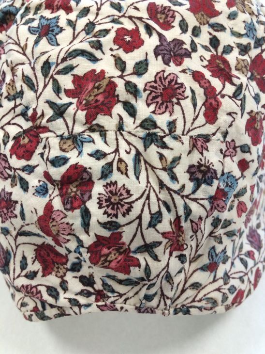 Sitsen meisjesmuts, met dunne bloemranken op witte grond