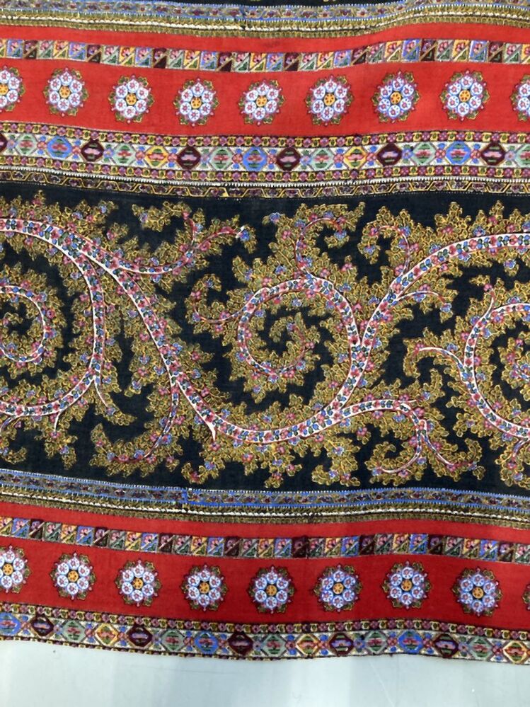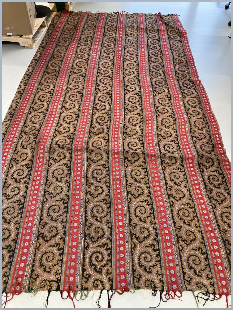 Omslagdoek van dunne wol, gedrukt in lengtestrepen in kasjmierstijl