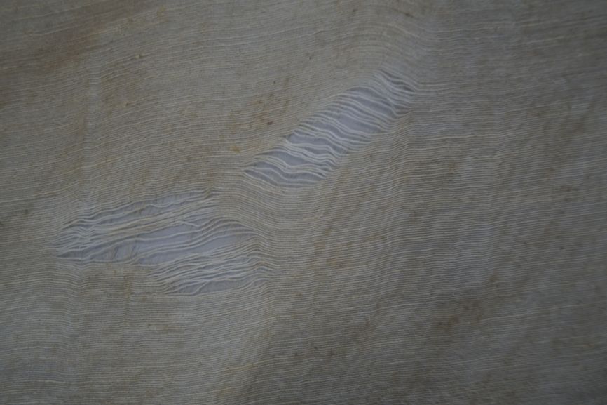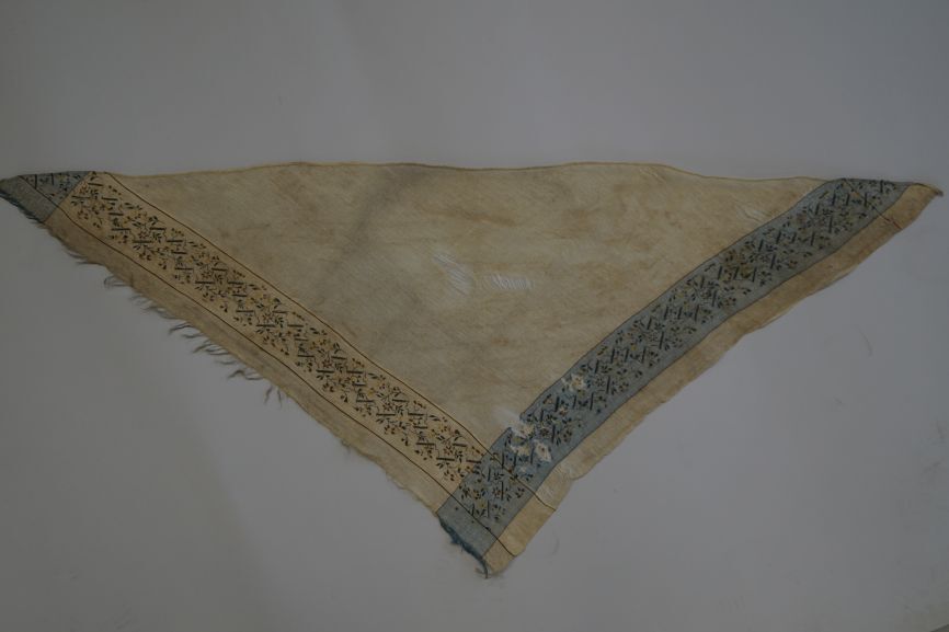 Fichu van créme kleurige wol met zijde, bedrukt met rand met kleine figuurtjes