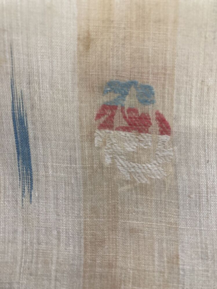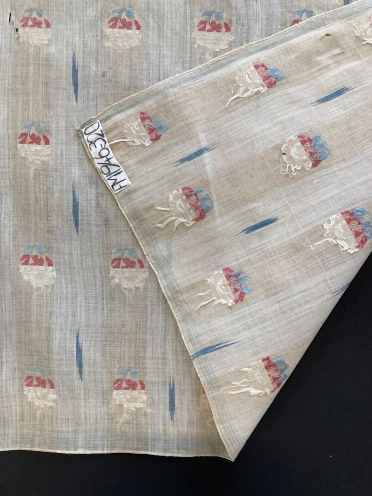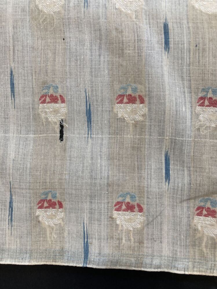 Wit katoenen doek met ingeweven patroon in strepen met gestileerde bloemen en ikat strepen