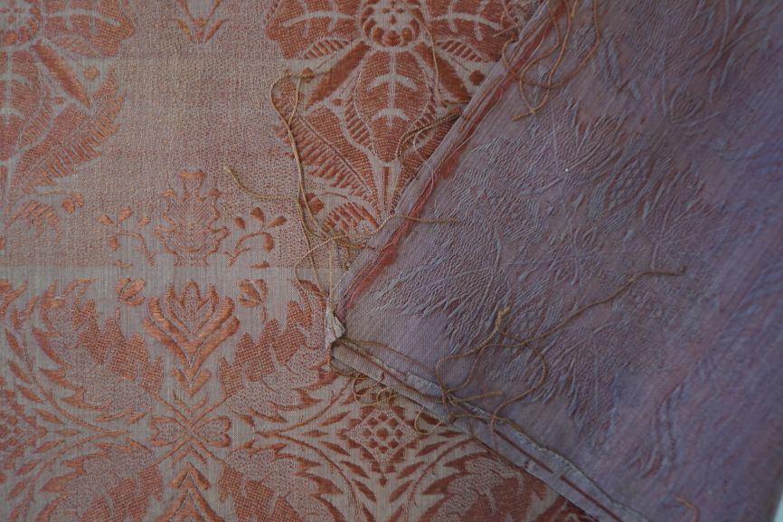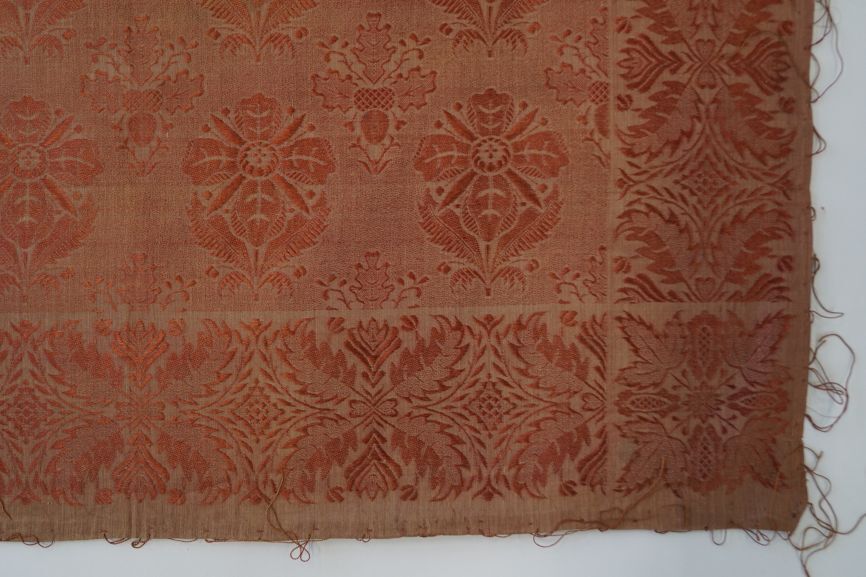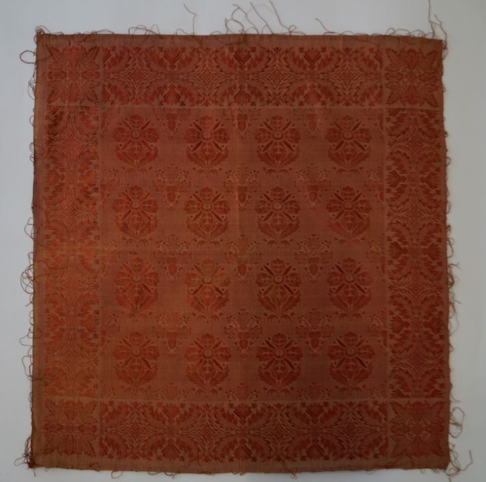 Sjaal van donkerrode zijde met ingeweven bloemmotieven