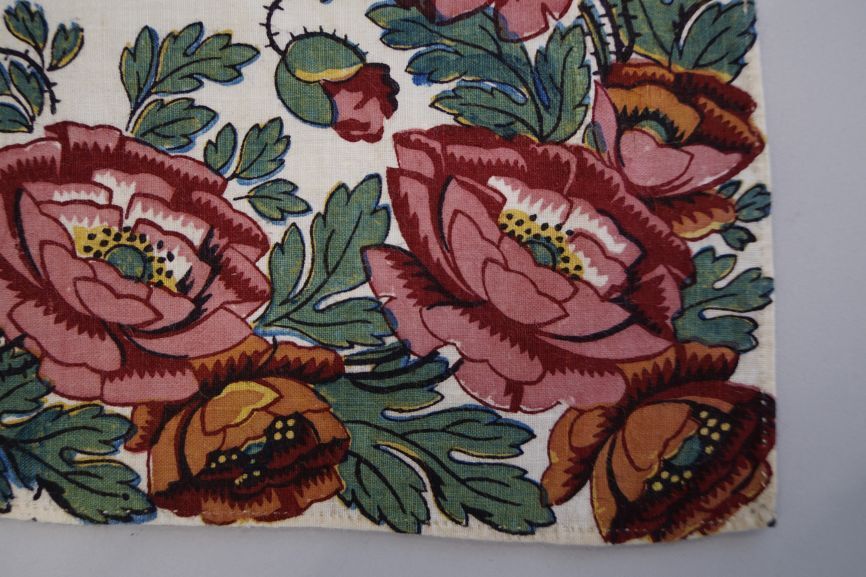 Witte driekante katoenen doek bedrukt met rozenpatroon en rozenrand