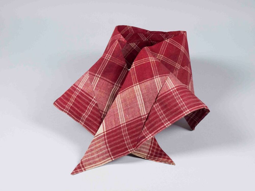 Vrouwensondook van rood-wit bont met ingeweven rand