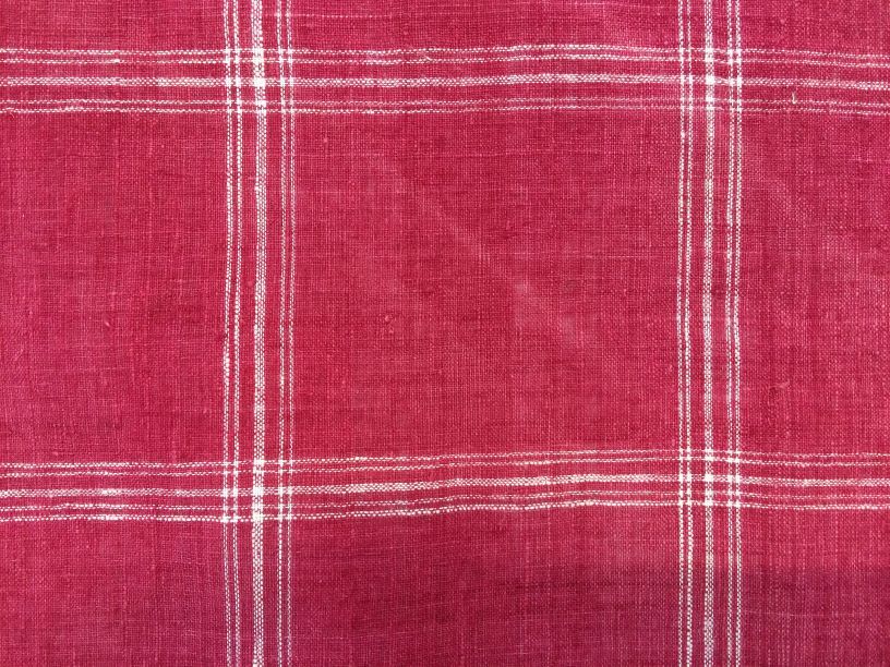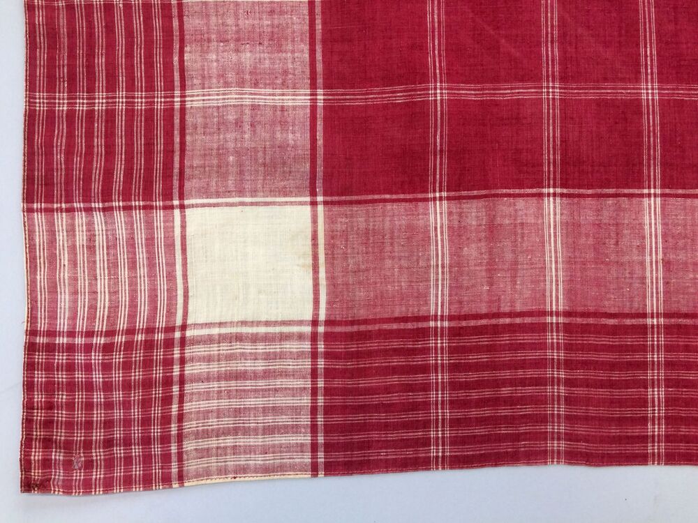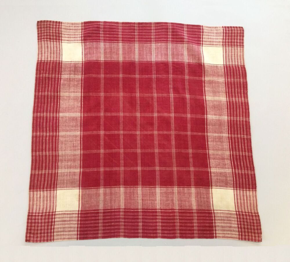 halsdoek met ingeweven ruit in dieprood en witte rand rondom.