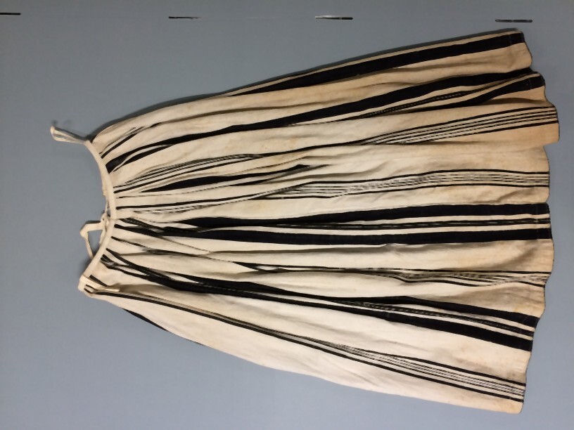 Wollen 'vijfschaften' (gestreepte) rok, wit met zwarte banen
