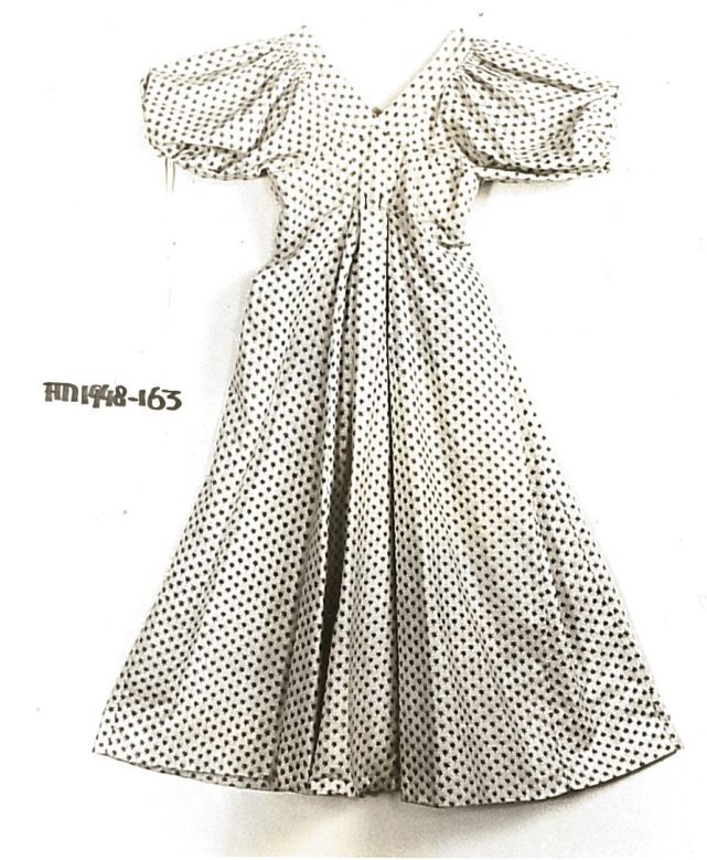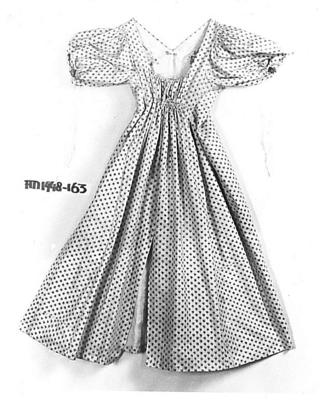 Empire jak met lange schoot en pofmouwen van wit-katoen met fantasie-strooi motiefje