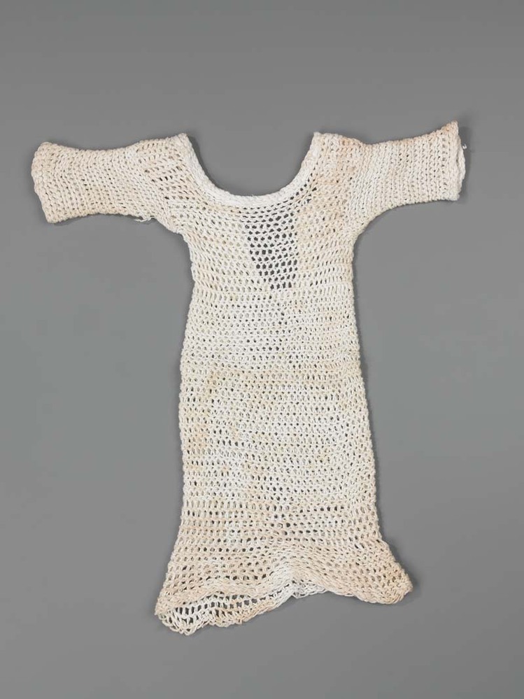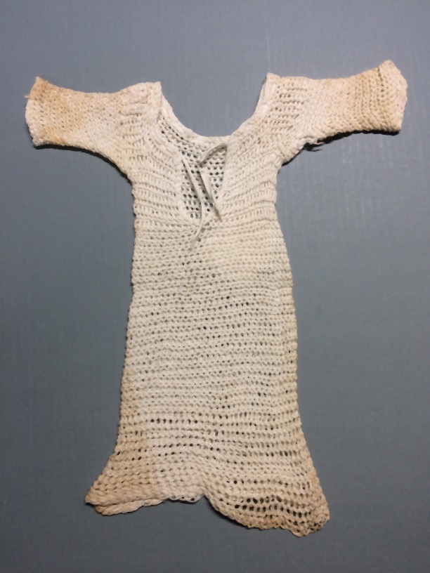 Wit gehaakt katoenen poppenonderjurk,