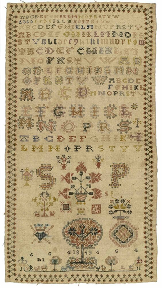 Merkletterlap met rand rondom, gemerkt S.P. 1849