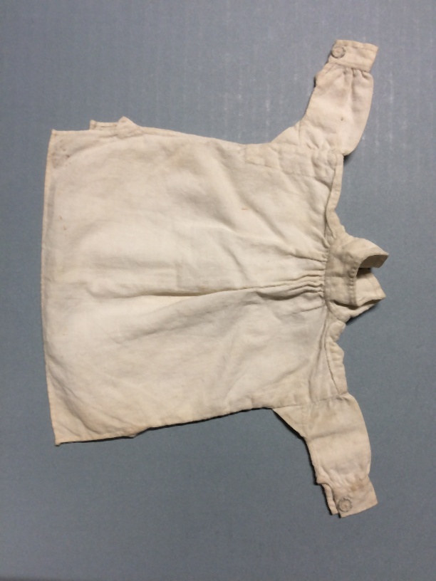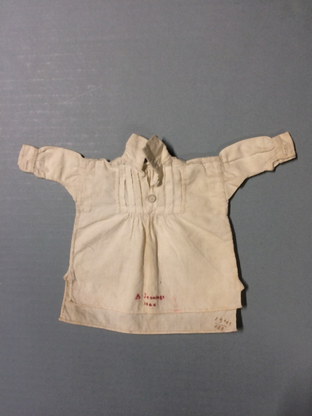 Miniatuur mannehemd met geplooide bef, gemerkt A. Jennings 1846
