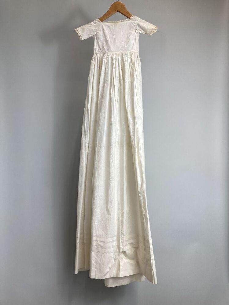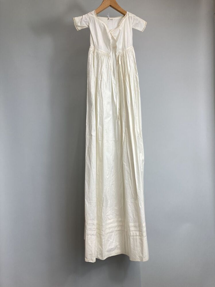 Onderjurk van doopjurk van wit katoen afgezet met machinale kant