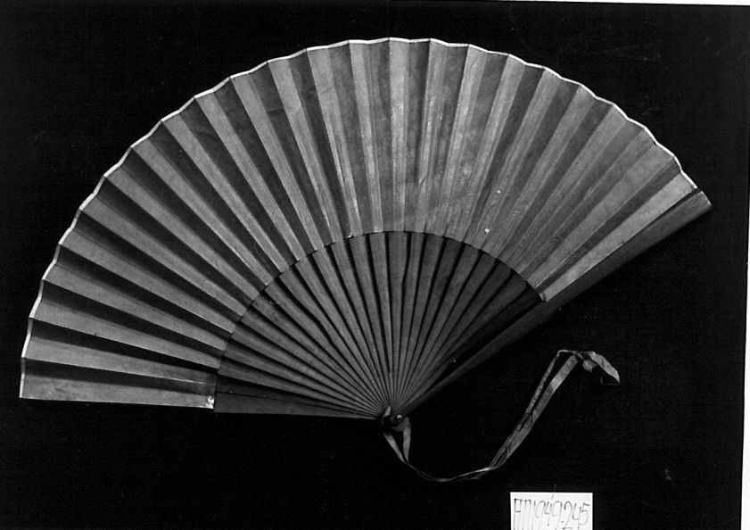 Waaier met dunne bruine houten bladen, beplakt met groen papier