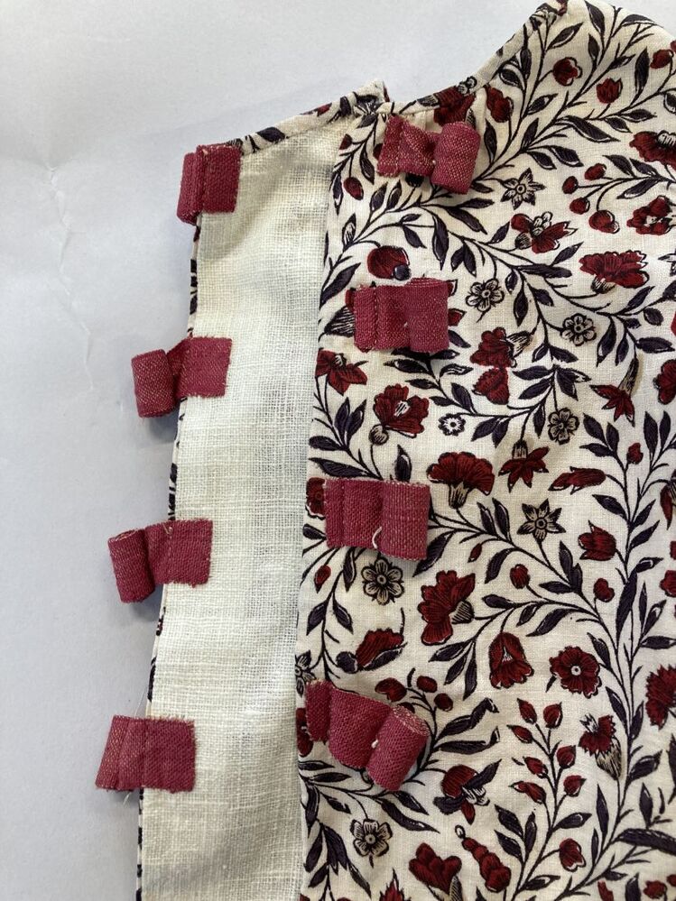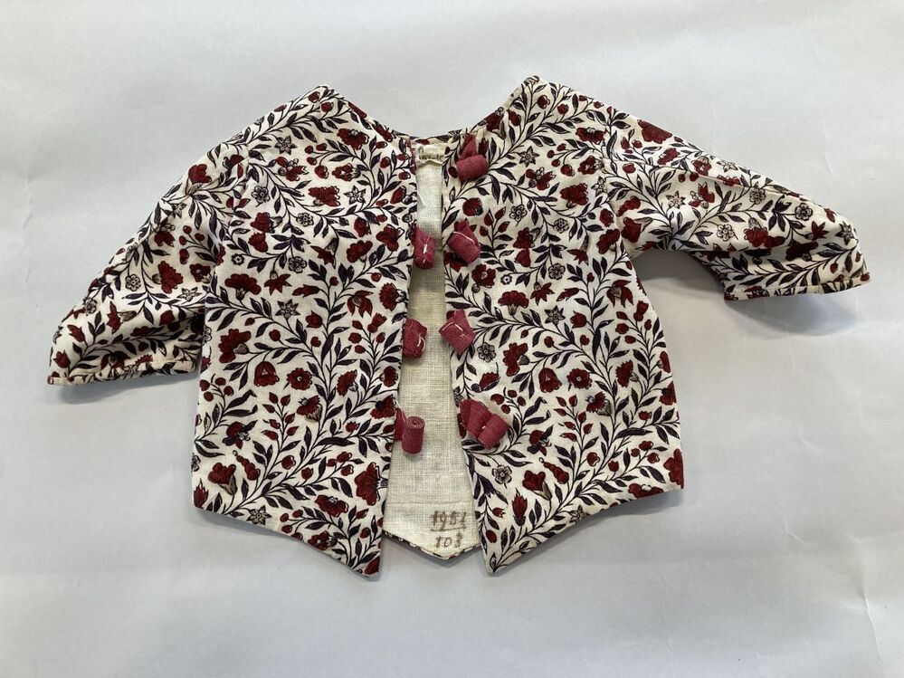 Bedrukt katoenen babyjakje, met dicht patroon van krullende ranken op witte grond