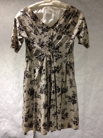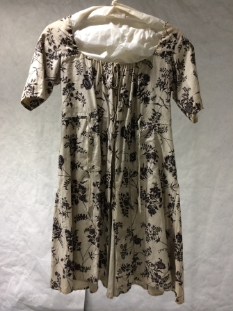 Sitsen Empire vrouwenjak, met hoge taille met dunne ranken met toefjes bloemen op witte grond