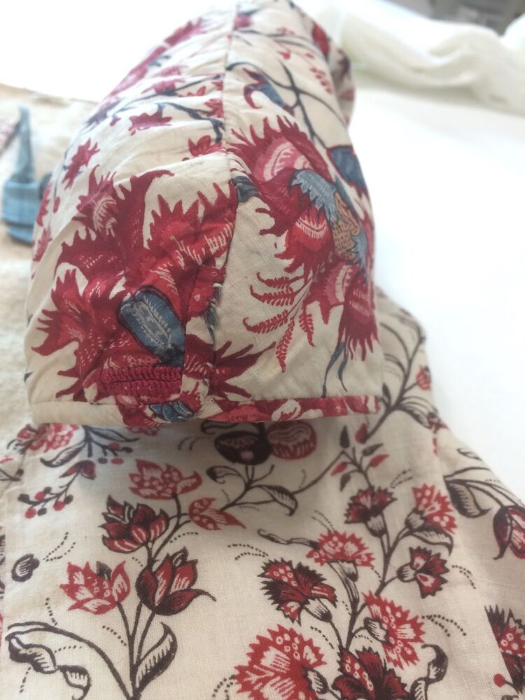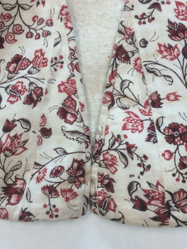 Informeel vrouwenjak met rijgsluiting, lijf van Europees bedrukt katoen en mouwen van Indiase sits
