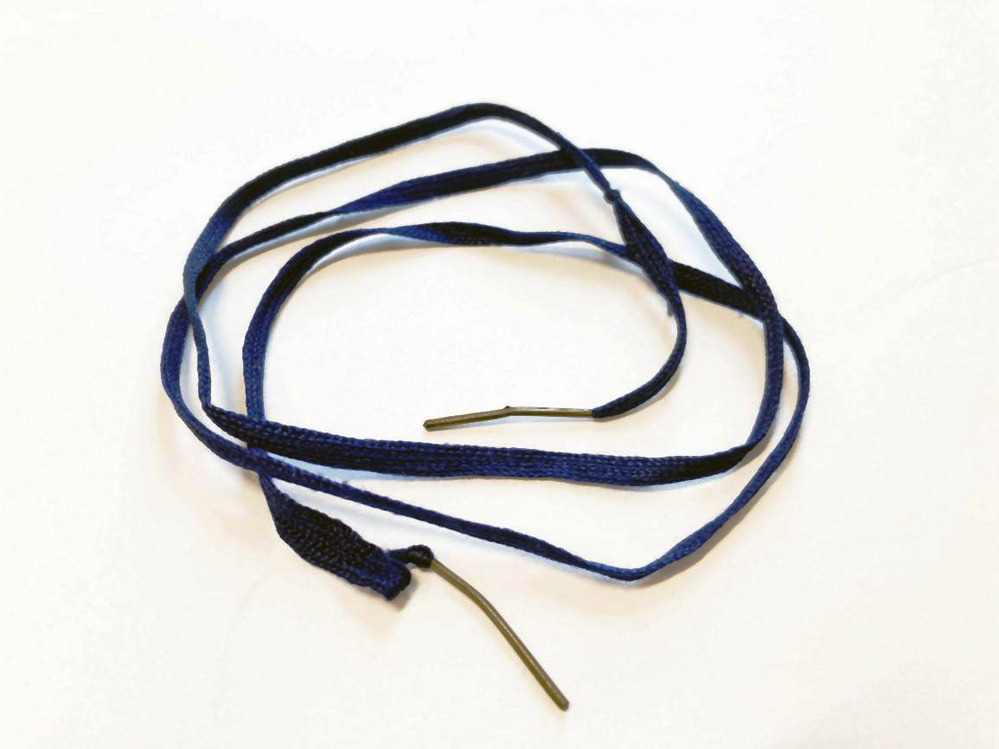 Donkerblauwe rijgveter die hoort bij een informeel vrouwenjak met rijgsluiting