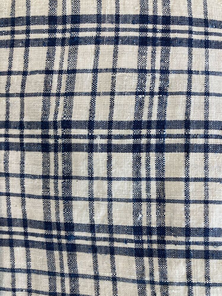 Half schort van bont, witte grond met donkerblauwe strepen, staal onbekend