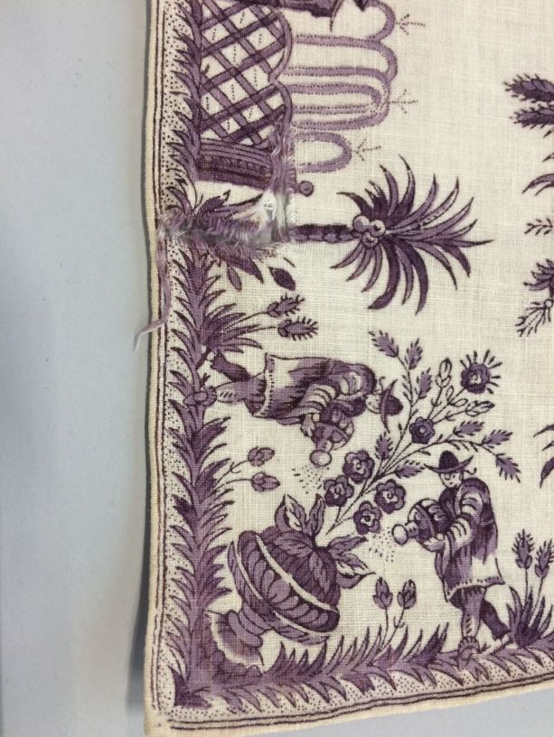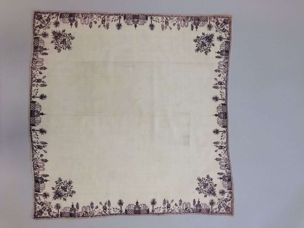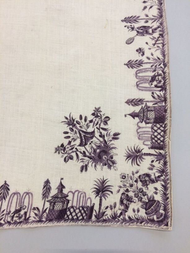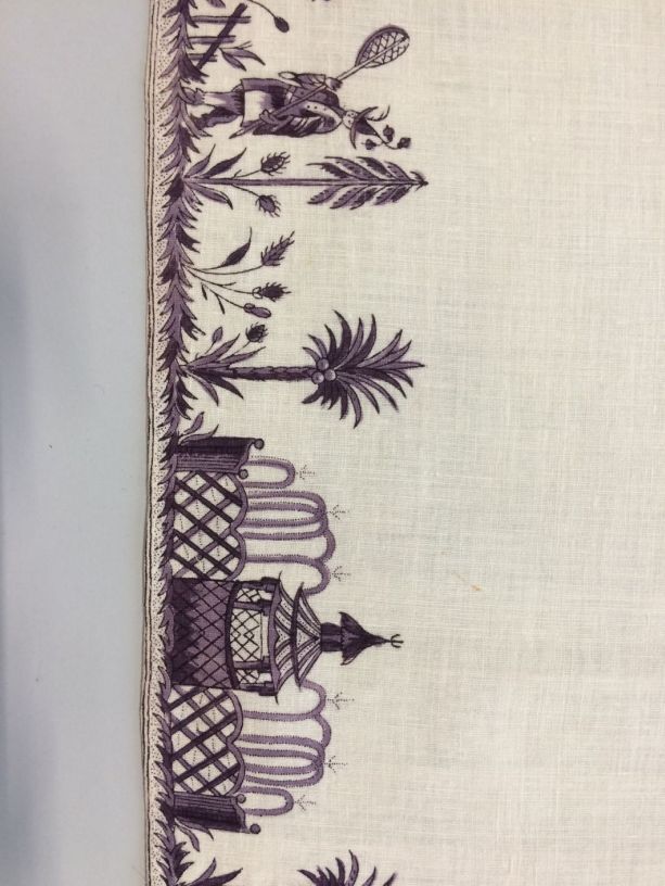 Vierkante bedrukte katoenen doek of sjaal met lila chinoiserie rand.