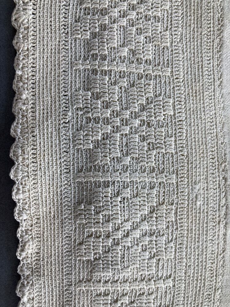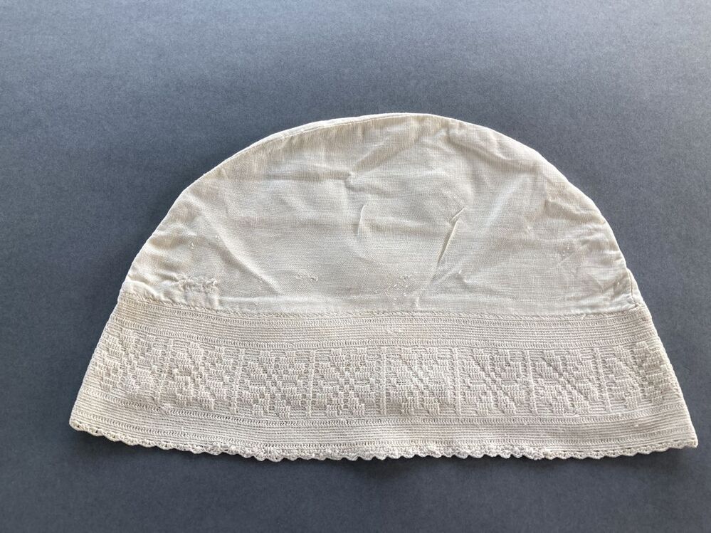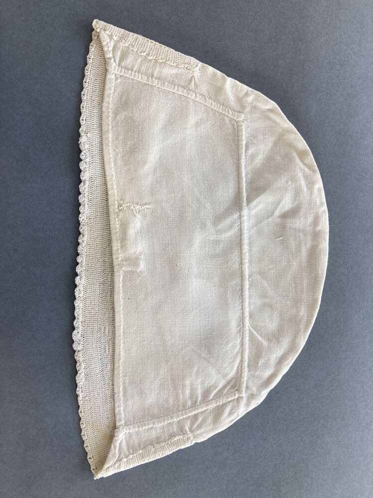 Witte ondermuts of tipmuts met fijn gehaakte rand met rozetten