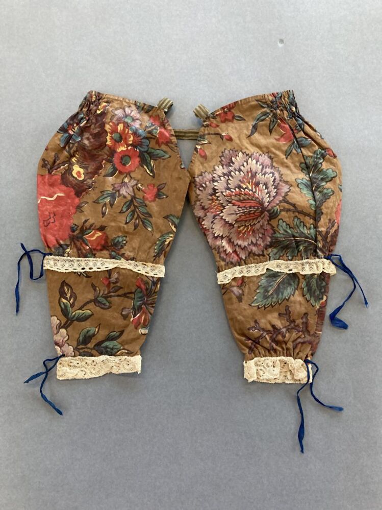 Bedrukt katoenen kindermouwtjes of mitaines, rozetakken met eikenbladeren op bruine grond