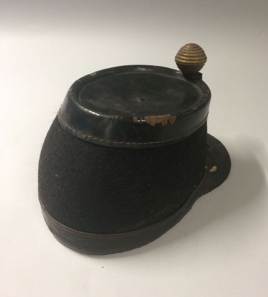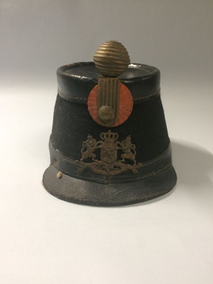 Sjako van de stadsschutterij, grof vilt en zwart leer, Nederlands wapen