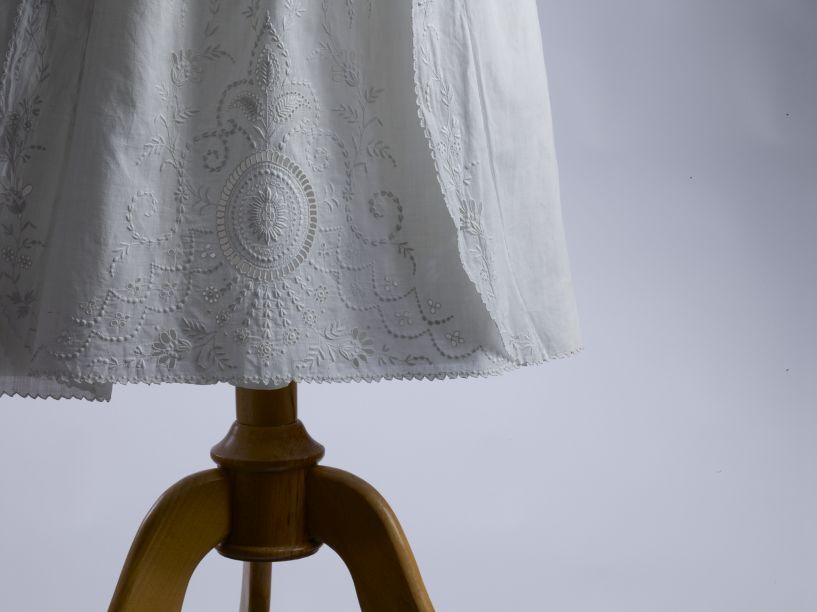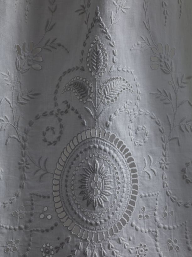Verwijst naar werken die zich kenmerken door een patroon of ontwerp dat is uitgevoerd in met draad of fijn metaaldraad gemaakte steken. De patronen worden gewoonlijk uitgevoerd op stof, maar ook leer, papier of andere media kunnen worden gebruikt; de werken kunnen bedoeld zijn om ingelijst te worden of om kleding, bedtextiel, meubelbekleding, kussens, altaarkleden, ceremoniële voorhangen of andere zaken te versieren. (AAT)