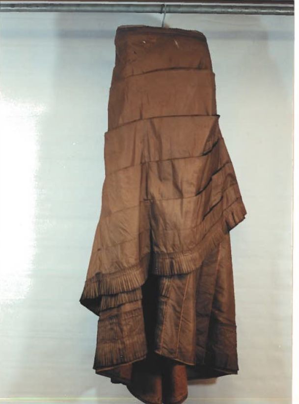 Rok van kostuum van bruingrijze zijde van omstreeks 1870