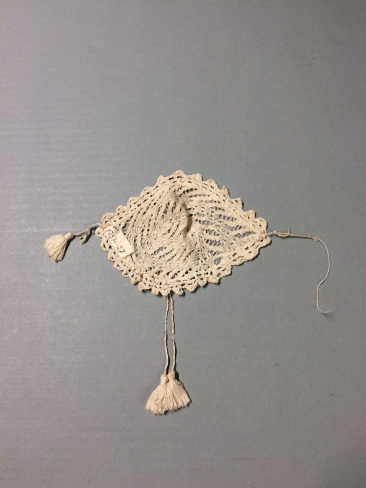 Wit katoenen gehaakt poppenmutsje