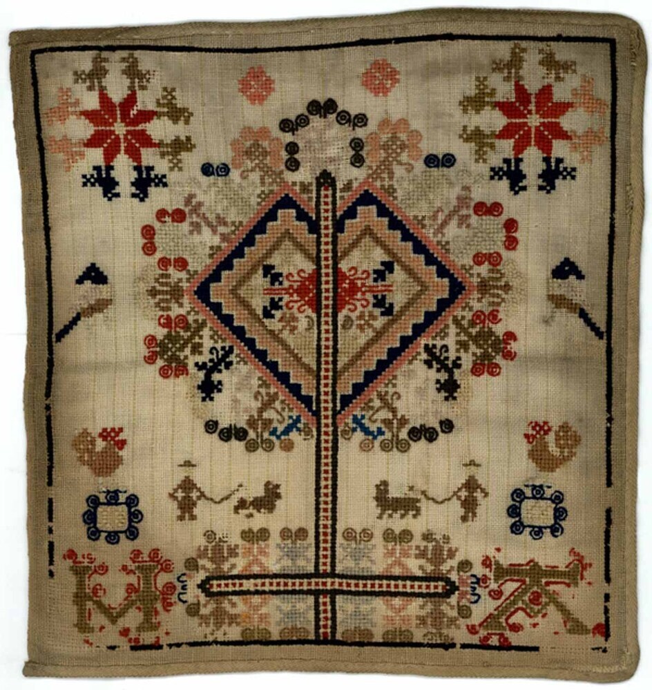Merklap met grote levensboom, gemerkt H.A., 1856