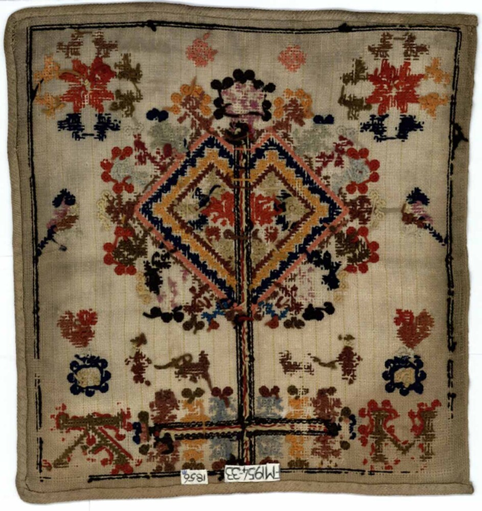 Textielwerken, meestal van fijne stof, waarop door vrouwen en meisjes in verschillende steken is geborduurd en die bedoeld zijn om in te lijsten. Ze werden doorgaans gemaakt door beginnelingen om hun vaardigheden te tonen. Kenmerkend zijn een combinatie van steken, motieven, letters en verzen, en vaak de voltooiingsdatum en de naam van de borduurster. (AAT-Ned) https://data.cultureelerfgoed.nl/term/id/cht/9af3e18e-7bc8-40d2-87ca-8eef2dfe2bc3