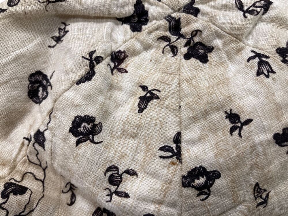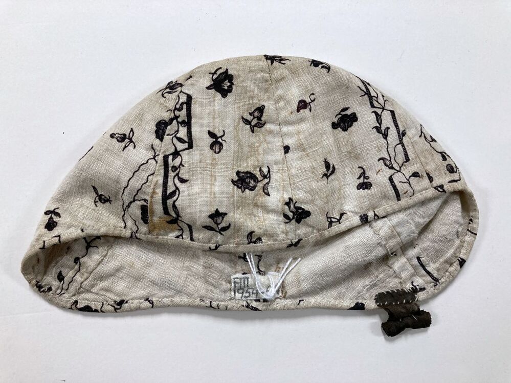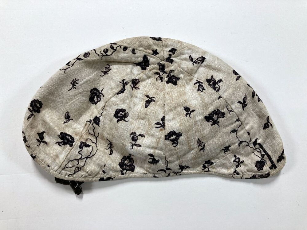 Bedrukt katoenen jongensmuts, met strooimotiefjes en bladerrank op witte grond
