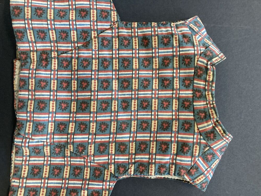 Jongensvestje met dubbele knoopsluiting van bedrukt geruit katoen, met bloemetjes
