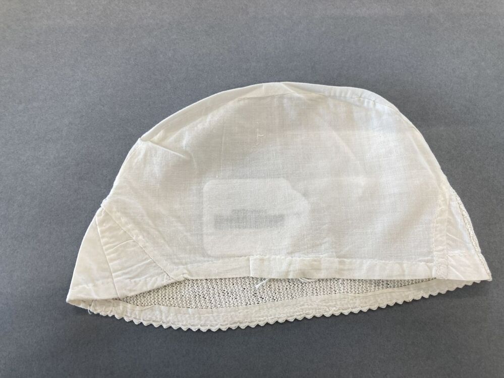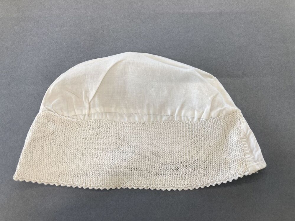 Witte katoenen ondermuts of tipmuts met gebreide ribbel rand