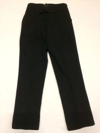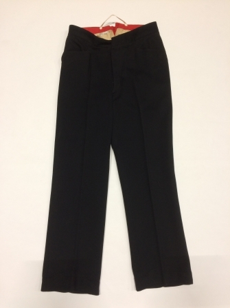Zwarte lange broek van wol met gulpsluiting, onderdeel van mannenkostuum