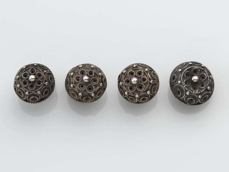 Vier van zesentwintig halfbolvormige knopen met achterop een oogje, zogenaamde zeeuwse knopen