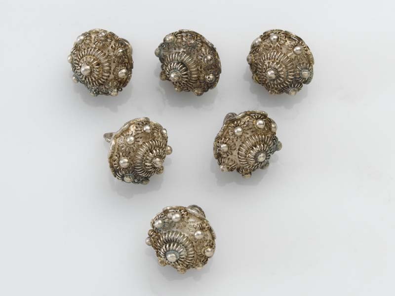Zes ronde knopen met een kegelvormige bovenkant