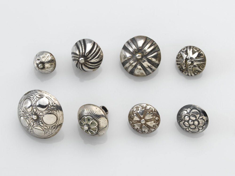 Halfbolvormige knoop met op de knoop bloemvormen en ovalen