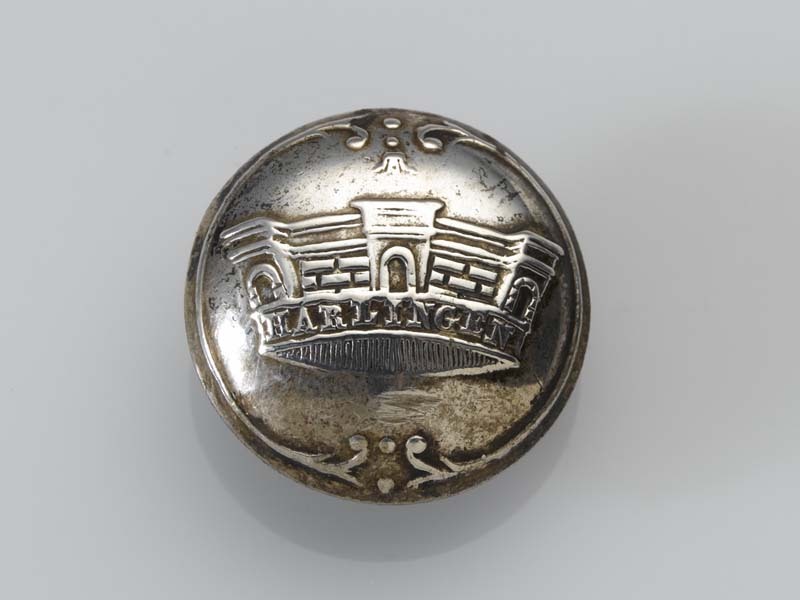 Bolle ronde knoop met een stedenkroon, HARLINGEN