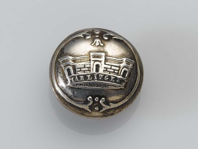 Bolle ronde knoop met een stedenkroon, HARLINGEN