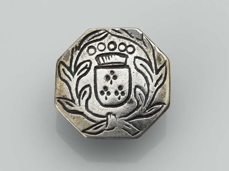 Platte, achtkantige knoop met een wapen