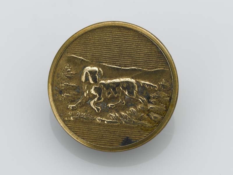 Ronde, platte knoop met jachtvoorstelling van hond met prooi