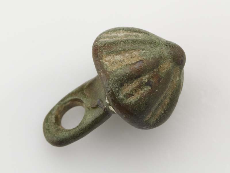 Ronde, bolle bronzen knoop met verhoogd hart