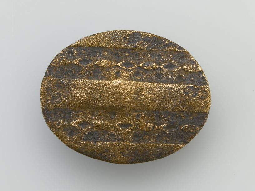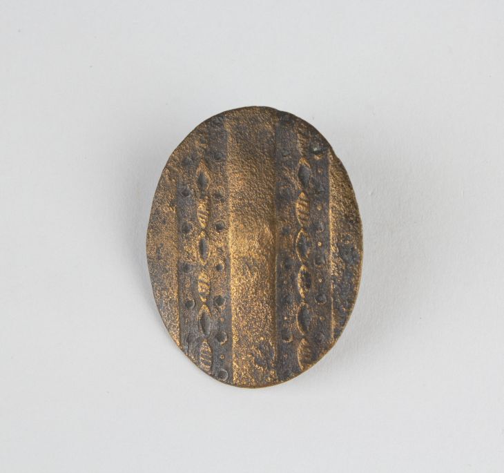 Ovale koperen plaat knoop, met banen van ovalen en stippen