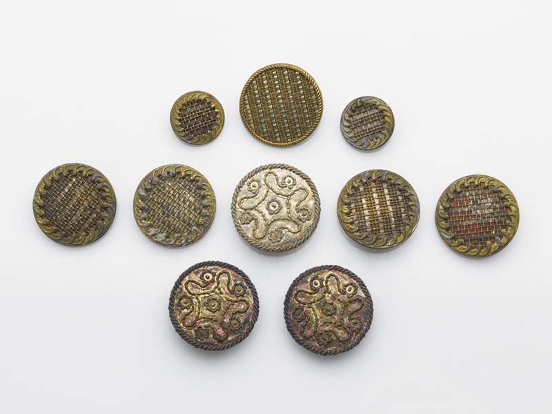 Vijftien knopen (grote en kleine) diverse materialen en versiering