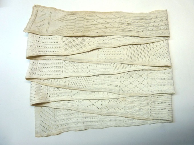 Breirol, lange smalle gebreide katoenen strook, met 45 verschillende patroonsteken, gemerkt A W