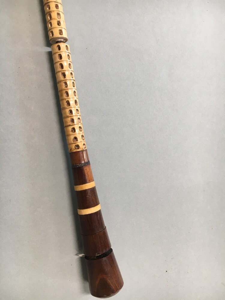 Wandelstok, bestaande uit benen ringen en top