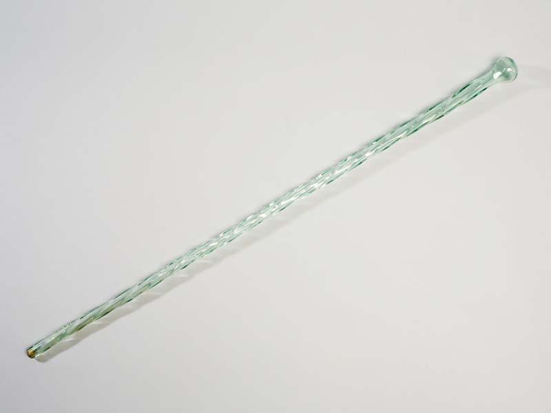 Lichtgroene glazen wandelstok met torswerk, ronde knop, hol