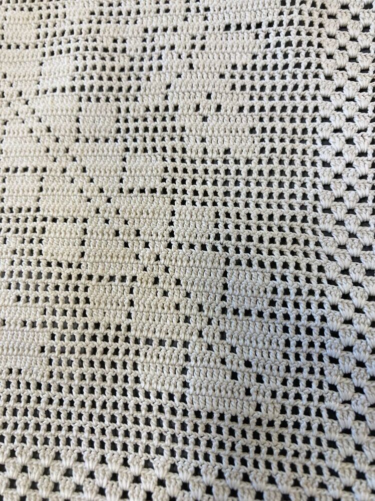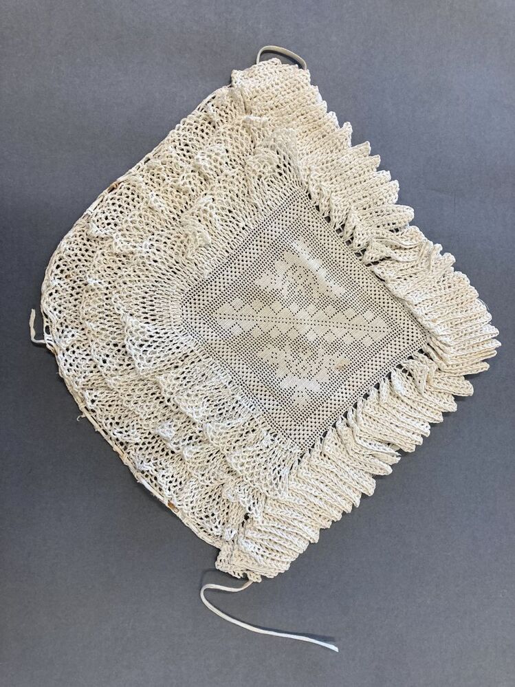 Gehaakte wit katoenen morgenmuts met hanekam