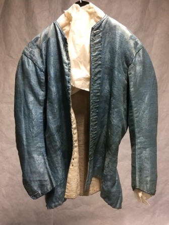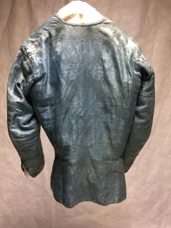 Baeitje van blauwe damast (linnen-zijde) met ingeweven blauwe bloemen